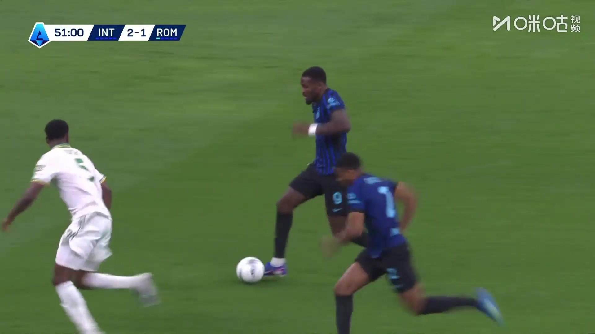打崩了!巴雷拉断球杀入禁区打门得手!国米5-1领先罗马!
